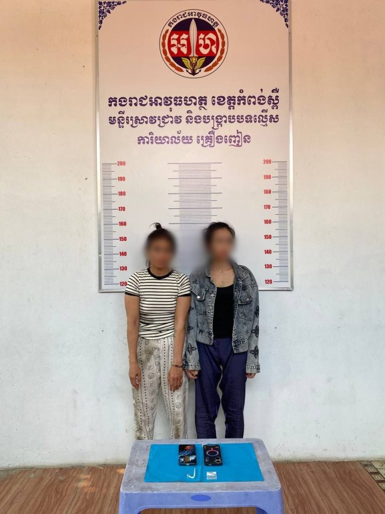 ជាក់ស្តែង កាលពីវេលាម៉ោង០៨:២២នាទីព្រឹក នាថ្ងៃទី២៧ ខែមីនា ឆ្នាំ២០២៦ កន្លងមកនេះ កម្លាំងមូលដ្ឋានកងរាជអាវុធហត្ថក្រុងច្បារមន បានធ្វើការបង្រ្កាបនិងឃាត់ខ្លួនបានជនសង្ស័យជាស្ត្រី០២ ដែលជាប់ពាក់ព័ន្ធករណីគ្រឿងញៀន ស្ថិតនៅភូមិភ្នំដី សង្កាត់ច្បារមន ក្រុងច្បារមន ខេត្តកំពង់ស្ពឺ។ដោយជនសង្ស័យមានឈ្មោះ ប៊ីន ស្រីលាភ ភេទស្រី អាយុ៣៧ឆ្នាំ មុខរបរមិនពិតប្រាកដ មានទីលំនៅបច្ចុប្បន្ន ភូមិកណ្តោលដុំ សង្កាត់កណ្តោលដុំ ក្រុងច្បារមន ខេត្តកំពង់ស្ពឺ និងឈ្មោះ សោម រក្សា ភេទស្រី អាយុ៣០ឆ្នាំ មុខរបរមិនពិតប្រាកដ មានទីលំនៅបច្ចុប្បន្ន ភូមិកណ្តោលដុំ សង្កាត់កណ្តោលដុំ ក្រុងច្បារមន ខេត្តកំពង់ស្ពឺ។